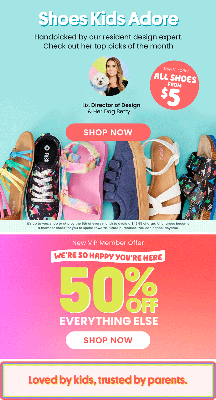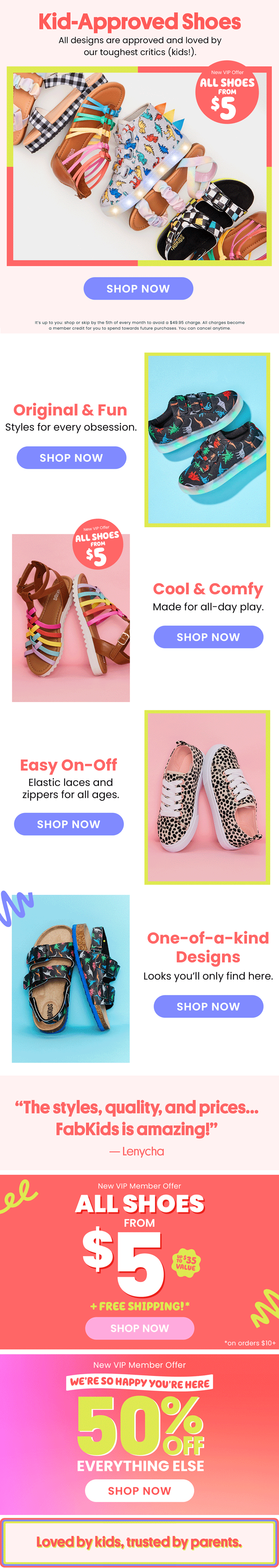 A curated email stream designed to convert, introducing new leads to the FabKids membership with clear value, vibrant visuals, and compelling reasons to join.