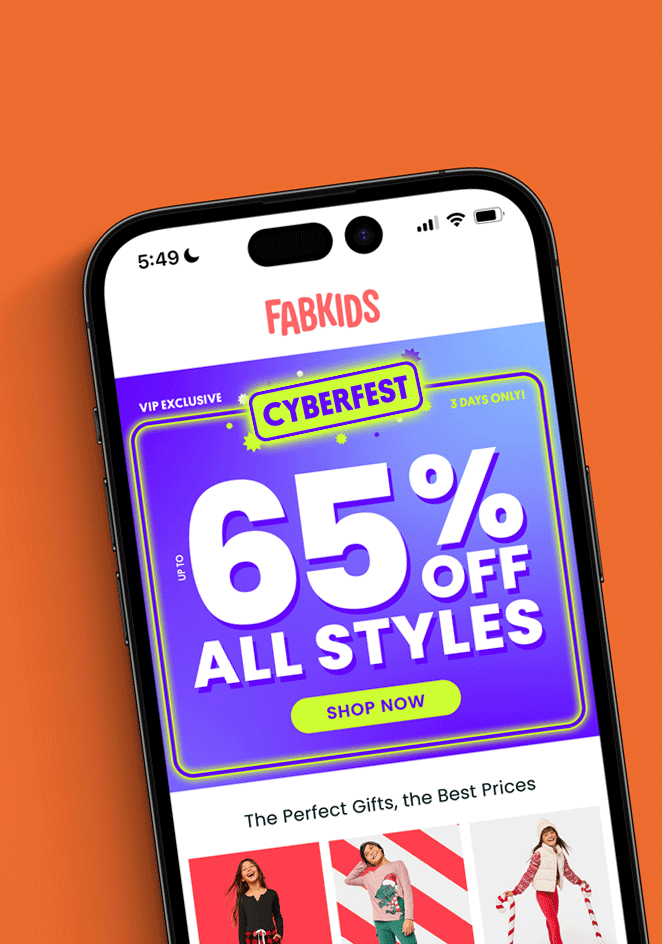 The branded storefront I developed for the main FabKids Amazon page, showcasing the brand's identity and highlighting our top product categories.